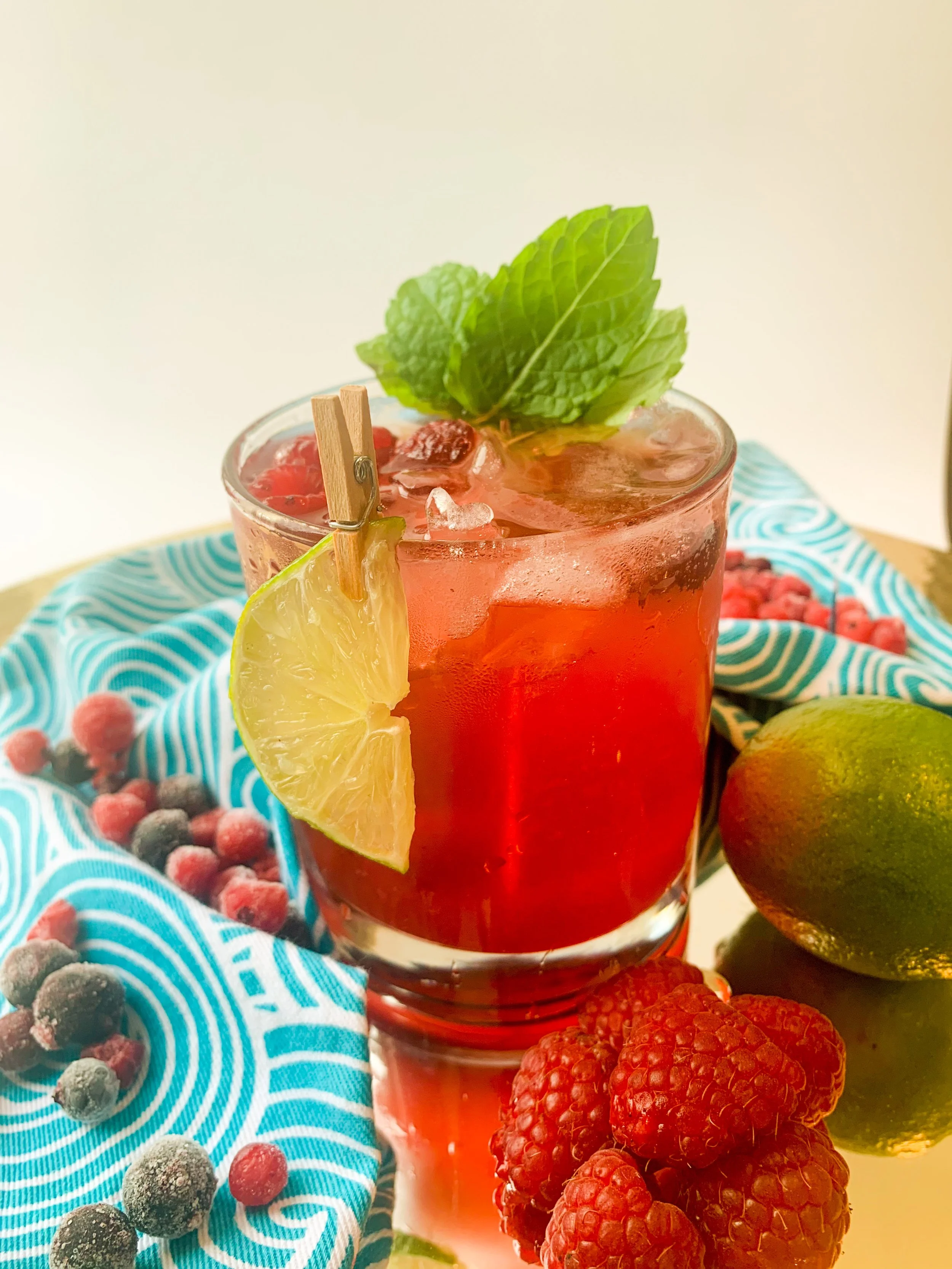Caleño Dark & Spicy, Raspberry Syrup, Mint, Lime, Lemonade
